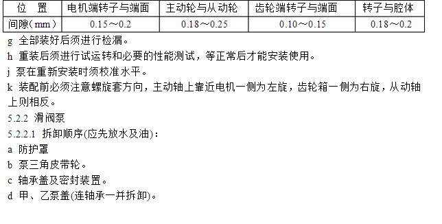 5.2.1 羅次泵進行拆卸和重新裝配時,須根據以下注意事項進行: a 未拆卸前,先測量并記錄轉子各部分間隙。
