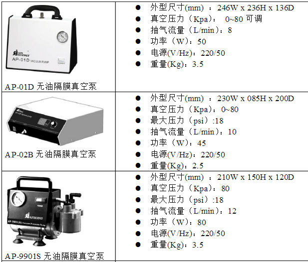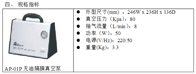 ? 隔膜型真空泵無(wú)需泵油; ? 工作效率高、噪音低;